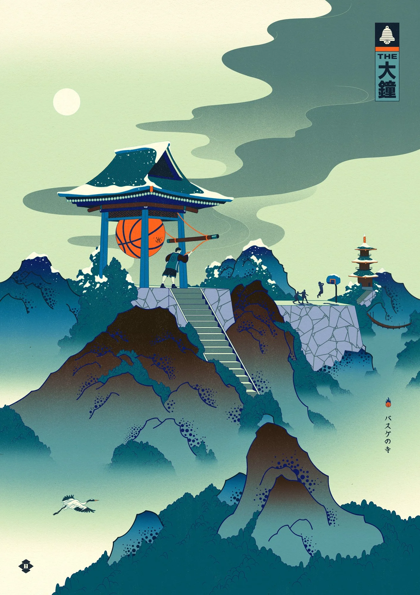 High in the mountains of The Iron Pines, the Temple of Hoops stands open to the sky — a court etched from stone, its lines carved by generations. Travelers climb the twenty-one steps to reach it, where the sacred game begins. The rule is simple: first to twenty-one may ring the sacred ball bell, whose sound carries through the valleys like thunder made of joy.