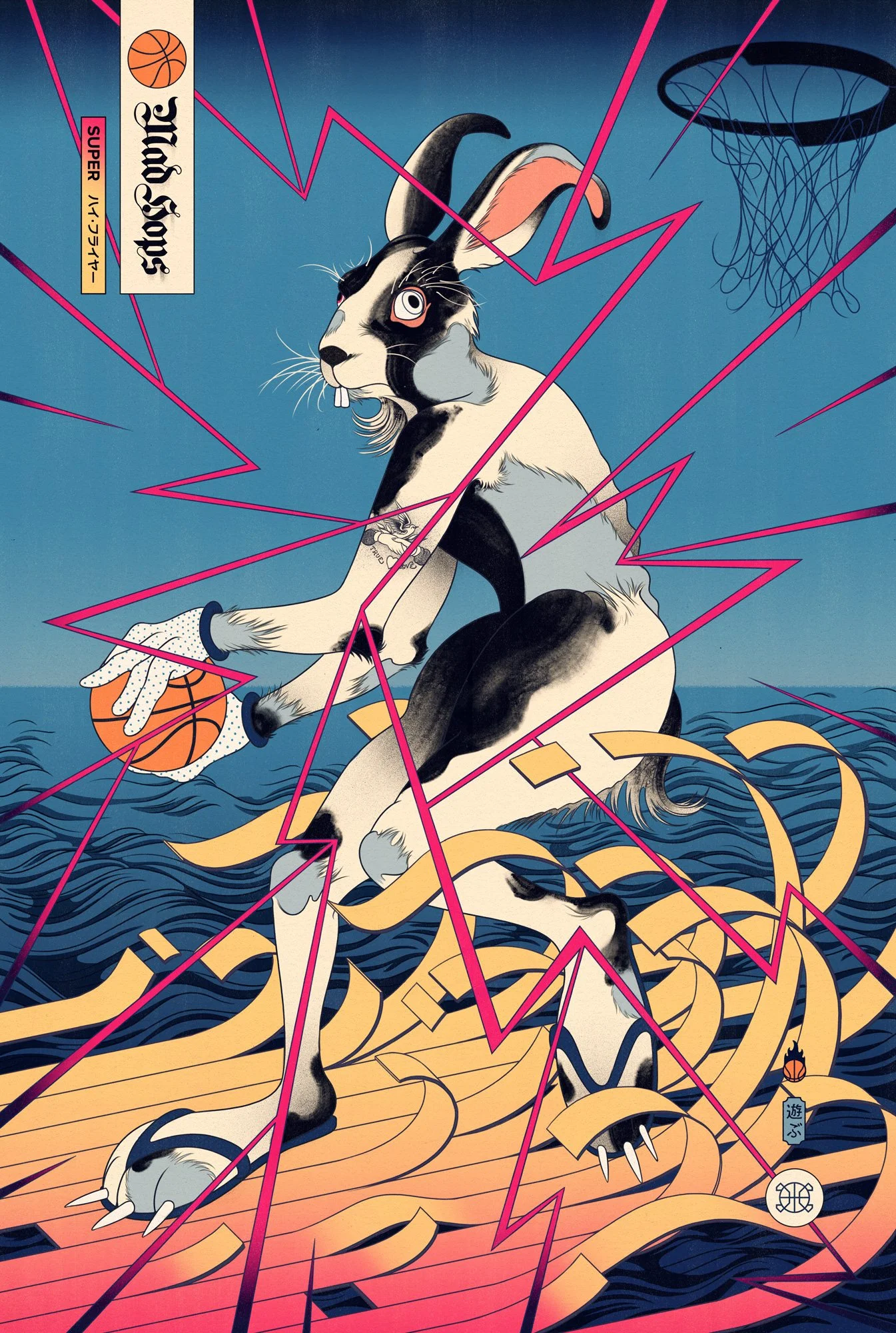 In the southern Isles, where volcano and ocean meet, legends tell of a historic yōkai known as The Bunny — said to have developed extraordinary hops, leaping higher than any warrior in Edo Ball. Some call it a myth, a story whispered between generations of hoopers; yet those who travel south swear they’ve seen it — a blur of motion, a dunk so pure it bends the air itself.