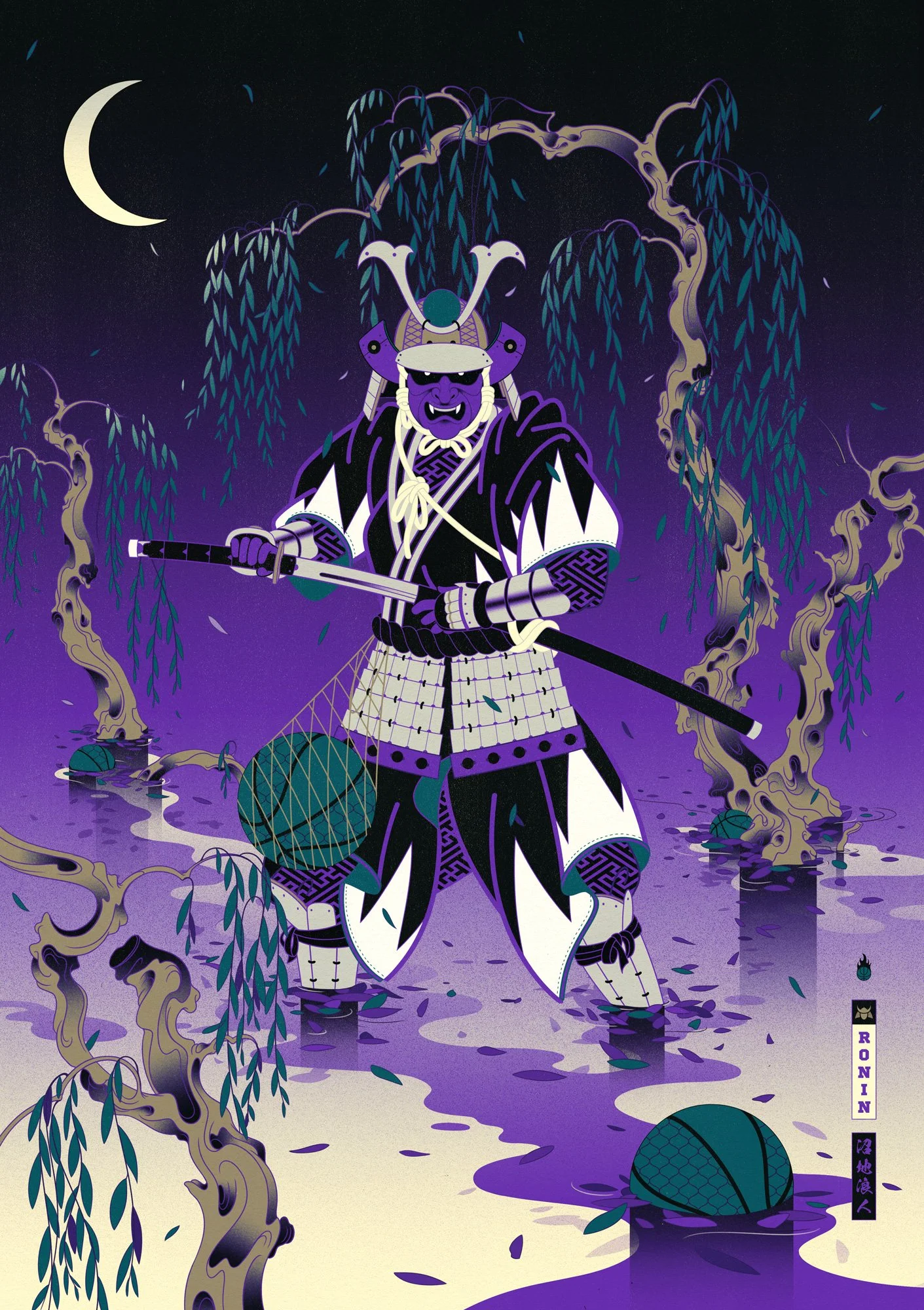 Far beyond the Capital’s light, past the fog-drenched wetlands, lingers a spirit known as The Swamp Ronin. Once a loyal samurai of the old Emperor from The Thousand Fans region, he was slain during the uprising that ended that age. His body fell, but his spirit refused to sink.
