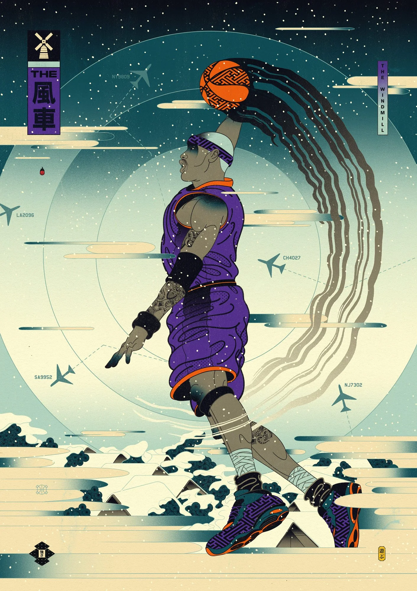 Athletic, Flashy, Free | Typhoon Dunk — Spins once, strikes like thunder. | Art Print → |